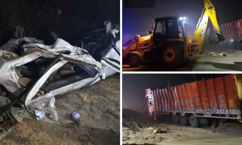 झज्जर में गुरुग्राम रोड पर खौफनाक हादसा: तुड़े से भरा ट्रक कार पर पलटा, 5 लोगों की मौत